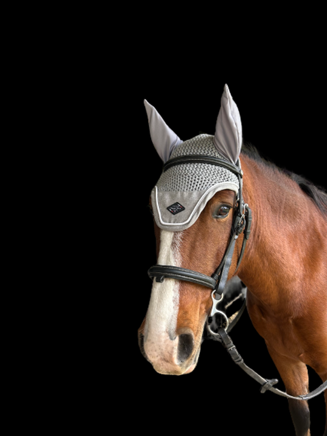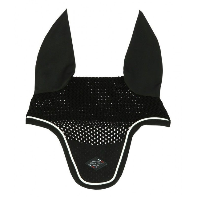 Protection contre les mouches, en polyester crocheté avec empiècement logoté et oreilles en tissu élastiqué en lycra. Réhaussé d'une fine tresse. Parfaitement assorti aux tapis, guêtres, protège-boulets, licols bandes et guêtres fermées de la panoplie French Touch.