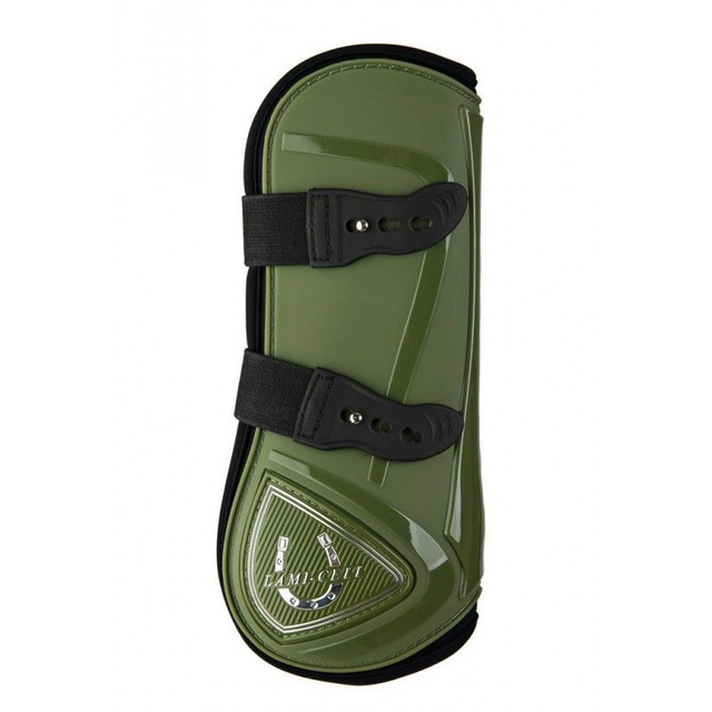 Guêtres "LC". Coque PU, doublure néoprène. Protège-tendons fermeture par sanglons montés sur élastiques, protège-boulets avec velcro et logo fer à cheval.
