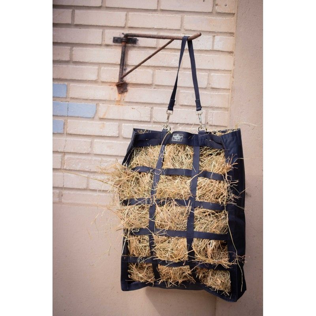 Un indispensable à emporter en concours hippique ou à suspendre en hauteur dans un box aux écuriespour éviter que le foin ne s’éparpille.Il se remplit facilement et le foin est très accessible pour les chevaux.