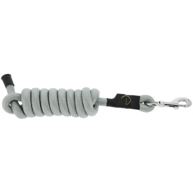 Longe en polypropylène effet métallisé et protection d'attache en caoutchouc, marquée du logo EQUITHÈME doré.