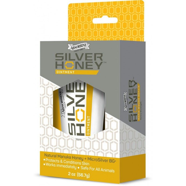Le soin naturel des plaies, blessures superficielles et irritations pour une cicatrisation rapide. "Silver Honey" est un produit cicatrisant avec une combinaison unique d’ingrédients naturels actifs : le miel de Manuka de qualité pharmaceutique et les microparticules d’argent MicroSilver BG™ ultra pur. Son efficacité 100 % naturelle permet une cicatrisation plus rapide des plaies. "Silver Honey" est efficace sur les coupures, abrasions, plaies, infections type gale de boue et dermatite estivale ou encore sur les brûlures. S'utilise sur tous les animaux.