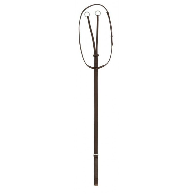Martingale à anneaux en cuir de buffle avec stop martingale en caoutchouc. Bouclerie inox.
