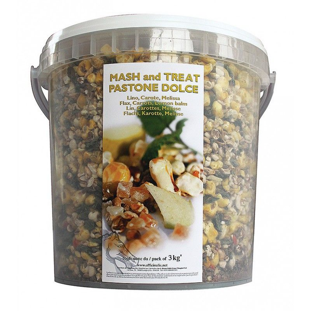 Riche en morceaux de carottes et mélisse. Aliment précuit prêt à l’administration. Dans la tradition populaire équestre, il est de coutume d’administrer une fois par semaine aux chevaux un mash contenant des graines de lin, du son et de l’orge bouillis dans de l’eau chaude et administré chaud, pour favoriser la bonne digestion et nettoyer l’intestin.