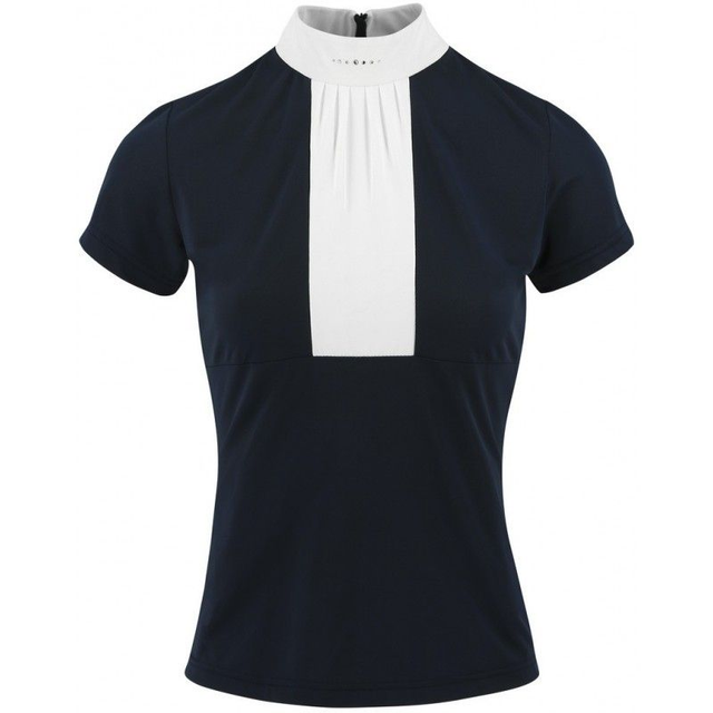 - Col blanc type lavallière avec une ligne délicate de strass.
