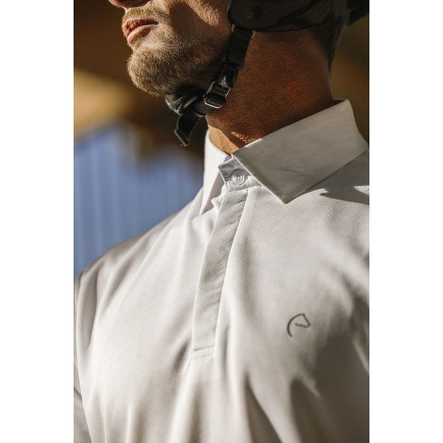 - Intérieur de col et boutonnière tissés rayés en contraste.