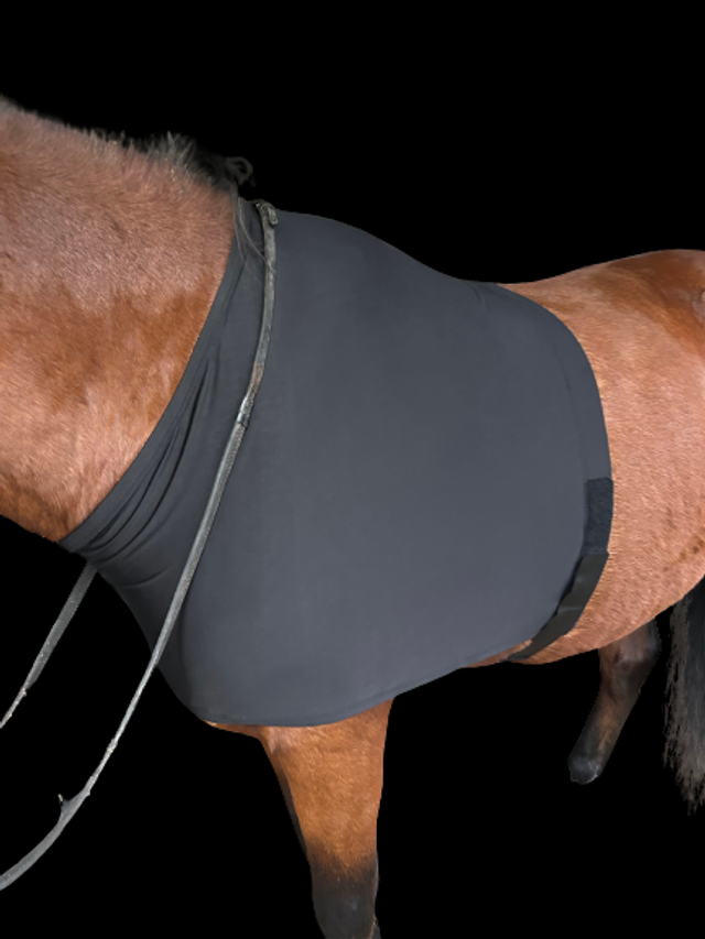 En élastiss (88 % polyester et 12 % élasthanne) avec fermeture par sanglons réglables par clip. Protège le poitrail de la fermeture avant de la couverture ou de la chemise. Evite le frottement aux épaules qui abime le poil.